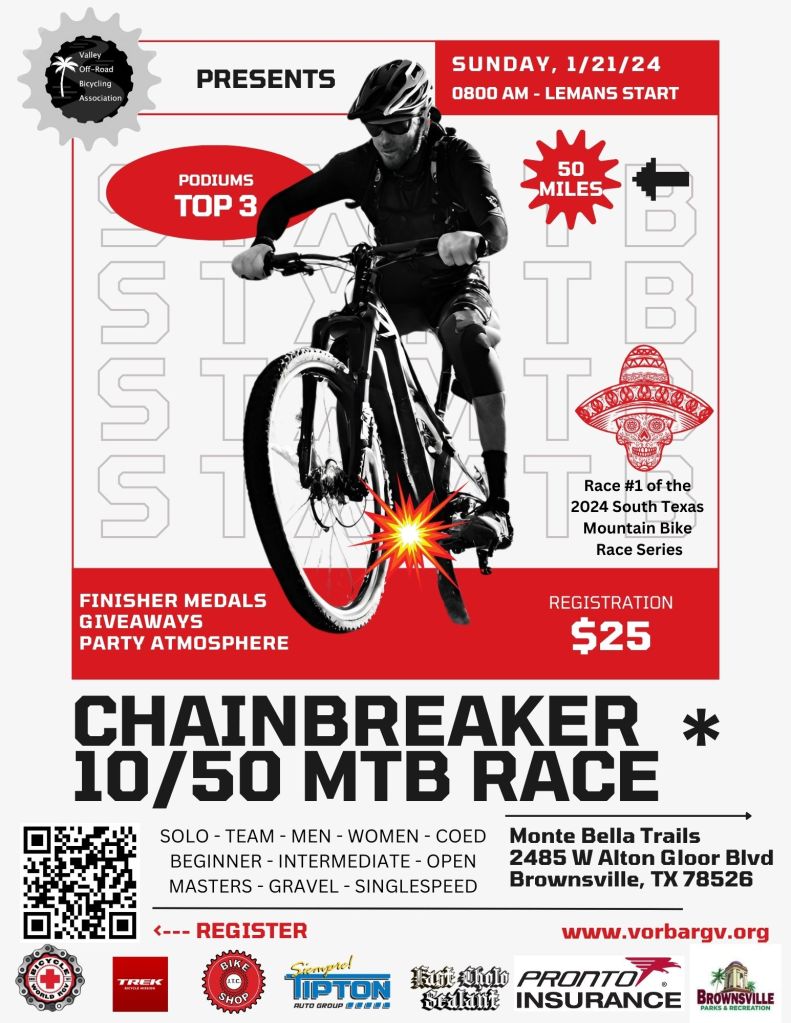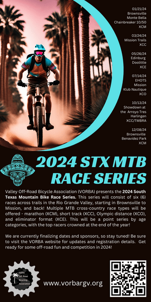 The Valley Off-Road Bicycling Association (VORBA) is a 501(3)(c) non-profit membership organization under the International Mountain Bike Association (IMBA) local chapter program. It’s mission is to create, enhance and preserve great trail experiences for cyclists in the Rio Grande Valley, and to preserve, protect and promote mountain and gravel bike access for diverse riding opportunities on Texas’s public and private lands through education, communication, and unified action.