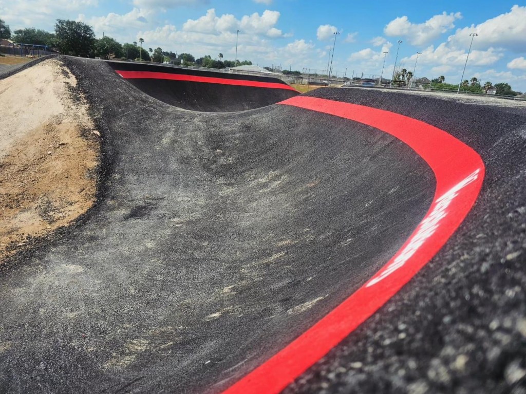 Description: The Harlingen Arroyo Park/Velosolutions pump track was built in June 2024, and is the first Velosolutions asphalt pump track built in the Rio Grande Valley, and the only track south of Sugar Land and San Antonio.