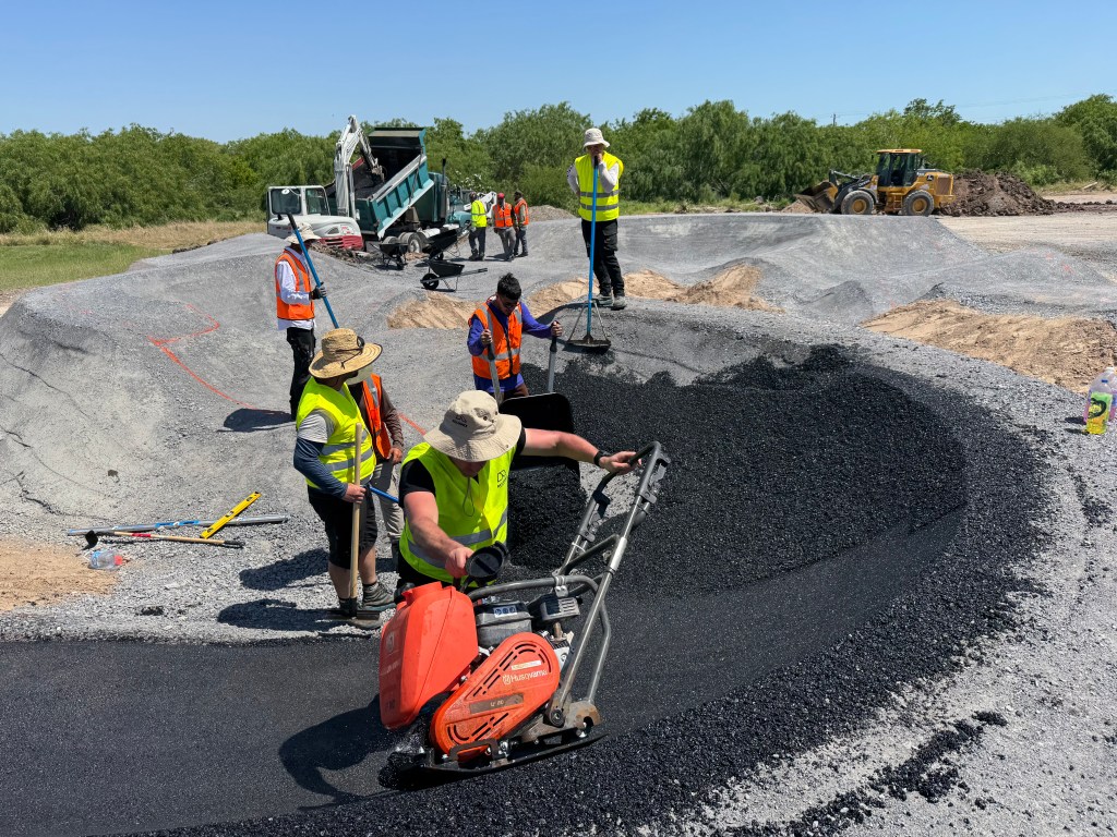 Description: The Pedro “Pete” Benavides / Alliance Pump Track was built in March 2025 by Alliance ASE, a world-renowned action sports park builder based in Europe. This project was funded by Cameron County Parks and Recreation as part of their newly renovated Pedro “Pete” Benavides Park in the deep southeastern part of Brownsville, Texas. The park features mountain bike trails, a running track, pickleball courts, a covered basketball court area, playgrounds, and now an asphalt pump track. This is Alliance ASE’s first asphalt pump track in North America, and it has a variety of rollers, berms, and a dedicated jump line for riders of all skill levels.